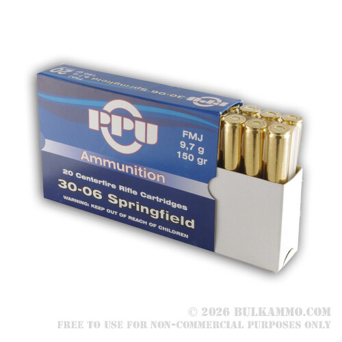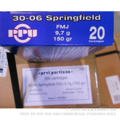 500 Rounds of 30-06 Springfield Ammo by Prvi Partizan - 150gr FMJ