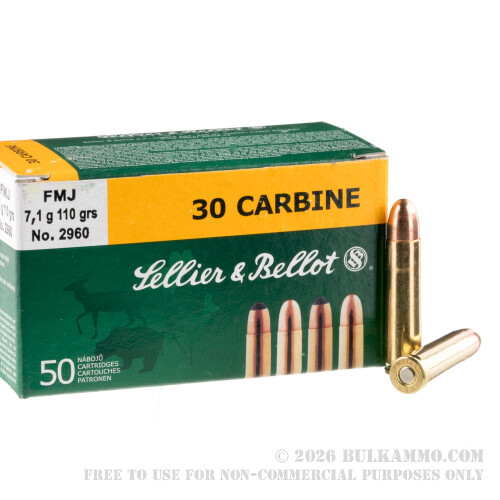 50 Rounds of .30 Carbine Ammo by Sellier & Bellot - 110gr FMJ