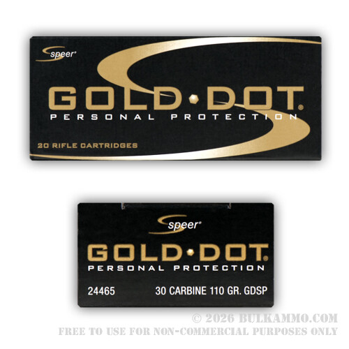 20 Rounds of .30 Carbine Ammo by Speer Gold Dot - 110gr GDSP