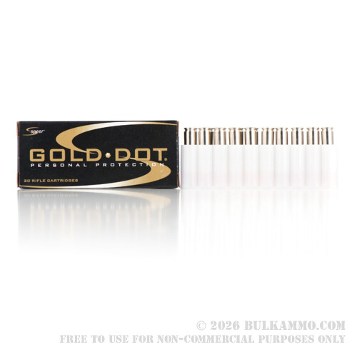 A significant performance boost in the tried and true intermediate cartridge: the venerable .30 Carbine. The 110 grain projectile utilizes the proven Gold Dot technology to ensure better performance at impact, even if it doesn’t utilize the standard end-to-end technology that made the Gold Dot line famous (their hollow point design). The soft point offers good compressibility and deformation with the potent ballistics that come with the cartridge.