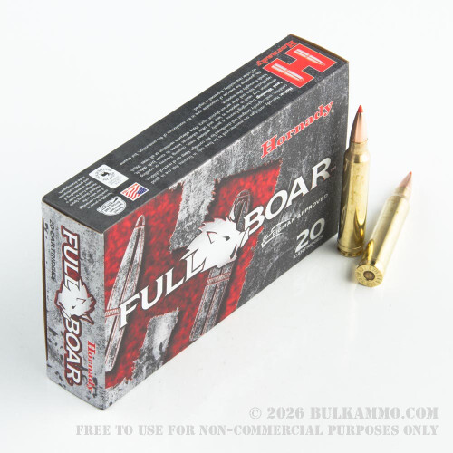 Full Boar ammunition is made with the highest quality reloadable brass casings and reliable primers that Hornady has at their disposal. This round’s propellant has been matched to its caliber to ensure optimal pressure and velocity, so you’re assured a hog-annihilating shot with every trigger pull.