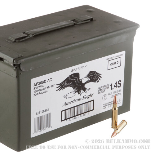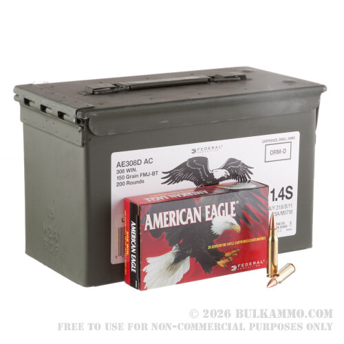 200 Rounds of .308 Win Ammo by Federal American Eagle - 150gr FMJBT