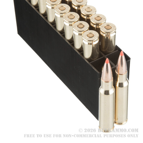 This .308 Win ammo travels up to 200 feet per second FASTER than the competition, and they are made in multiple different calibers. These rounds are topped with the easily recognizable .308 Winchester 150 grain GMX monolithic construction bullets. These monolithic construction bullets are all copper and reportedly maintain 95% of their heft upon impact, creating a large wound cavity. These cartridges use Hornady’s top quality, reloadable, thick walled, non-corrosive Boxer primed brass cases to ensure consistency and reliability. These rounds have a screaming fast muzzle velocity of 2,940-feet per second, and a hard-hitting 2,878-foot pounds of muzzle energy.