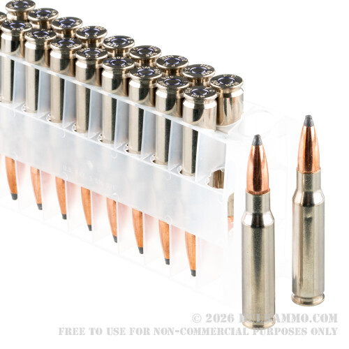 This 308 Win cartridge by Federal features a 150 grain Nosler Partition soft point projectile. The technologically advanced bullet features a special lead alloy dual core, which provides excellent mushrooming at practically any velocity. Its fully tapered copper alloy jacket is designed to rupture at the bullet’s tip, but thickens gradually along its axis to control expansion. The bullet’s namesake partition causes the front of the bullet to expand greatly, while its rear remains intact to retain weight and promote penetration. Finally, the bullet’s special crimp locks at its base strengthen it, allowing it to resist deformation under the immense pressure of being fired. This unique two chambered design is absolutely devastating in action, and a sure bet if you want to take down big game fast. To top things off, this cartridge’s nickel plated brass casing will feed and eject as well as it resists corrosion, and is perfect for handloading courtesy of its Boxer primer.