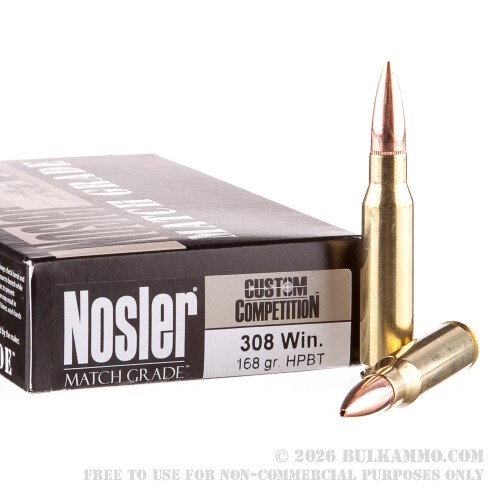 20 Rounds of .308 Win Ammo by Nosler Match Grade - 168gr HPBT