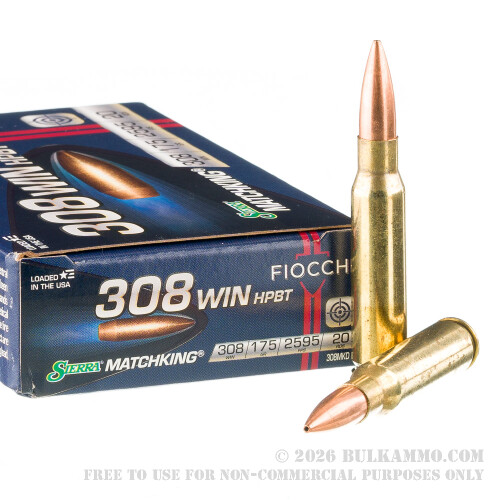 20 Rounds of .308 Win Ammo by Fiocchi Exacta Match - 175gr MatchKing HPBT