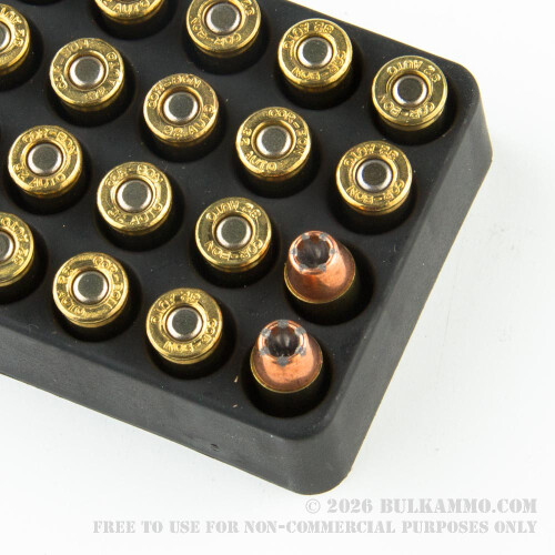 This 32 ACP cartridge by Corbon sports a 60 grain jacketed hollow point projectile. The gilding metal jacket fitted over the bullet’s soft lead core is specially scored inside and out to ensure uniform and rapid expansion to double the bullet’s diameter, with the jacket and core peeling all the way back to their base. This cartridge’s expanding capability is complemented by its fast muzzle velocity of 1,050 fps, which helps it to overcome being clogged by clothing at the moment of impact. With the ability to penetrate 9” to 15” within a target, this is a round you may very confidently chamber in your Kel-Tec P-32 or other pocket pistol for self-defense.