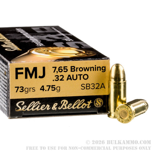 50 Rounds of .32 ACP Ammo by Sellier & Bellot - 73gr FMJ