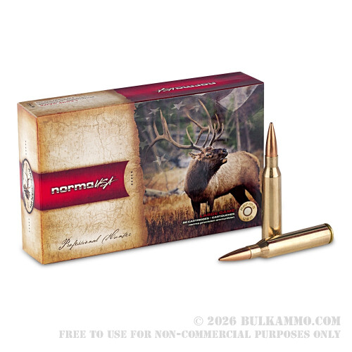These highly precise .338 Lapua Magnum rounds from Norma exhibit exquisite accuracy and game-dropping terminal performance. Norma is Swedish company with over a century of experience in providing high-quality ammunition to the public. These particular rounds are designed for the American market and made specifically to take down large elk, moose, and bear at long distances.