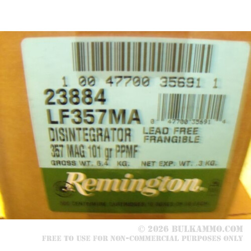 This bulk 500 round case of Remington Disintegrator 357 magnum ammunition is the future of steel plate and indoor shooting against steel backstops. It completely eliminates risk of deflection and ricochet when used properly and offers very little discernable performance differences for the shooter. The price point is competitive to good quality range ammunition and the tradeoff is completely worth the changeover if you are concerned with ricochet or deflection issues at your range. Furthermore, many shooters are noticing the policy changes that are becoming more widespread across the industry and are adapting by using ammunition like this. This is a logical first step in improved safety for packed indoor ranges.