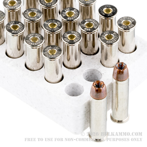 Using a unique bonding process, Winchester’s PDX One Defender ammunition is a popular choice for self-defense. The copper jacket and lead core have been welded together—which makes for better weight retention and maximal expansion upon impact. These hollow point rounds offer an expansion rate of 1.5 times the size of the original bullet, with notching in the copper jacket that creates six equal segments. These segments allow for uniform expansion, while the bonded core and jacket make for better barrier penetration. These rounds have been tested against stringent FBI standards and use the same technology as the rounds favored by the FBI. Winchester’s .357 Mag PDX One Defender rounds feature a 125-grain jacketed hollow point projectile in boxer-primed, noncorrosive, reloadable nickel-plated brass cases. Each box contains 20 rounds of .357 Mag by Winchester.