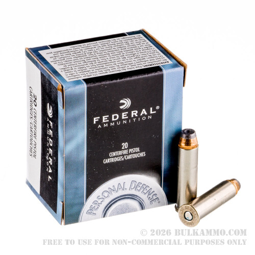 Looking for a high quality personal defense round? The Federal Personal Defense line of ammunition offers proven performance and reliability for your favorite revolver. Using high-quality primers and powders from Federal, these .357 Magnum rounds are loaded with a 158-grain jacketed hollow point projectile, into boxer-primed, noncorrosive reloadable nickel plated brass cases. Capable of a muzzle velocity of 1240 FPS, these rounds offer excellent penetration and stopping power with a high level of expansion.