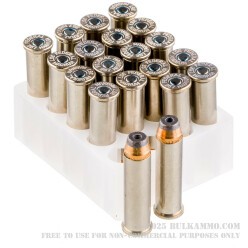 Whether for personal defense with your carry revolver or light varmint hunting with your favorite lever-gun, you'll find that these .357 Magnum rounds from Federal exhibit appropriate performance for the task. Each of these cartridges propels a 158-grain jacketed hollow point (JHP) which bears a wide-mouth cavity in its exposed lead tip; this construction promotes dependable expansion during entry which prevents over-penetration, creates a larger wound cavity, and delivers massive energy to vital zones. The projectile has a truncated cone shape that aids in cylinder or side gate loading; its hollow cavity facilitates safe storage in a tubular magazine.
