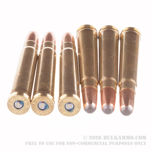 Originally created in 1912, the .375 H&H Magnum round was designed by gunmaker Holland and Holland in England. These rounds are perfect for big-game hunting like elk and bear, or on safari against larger animals like boar or elephant. Federal’s Power-Shok .375 H&H Magnum is equipped with a 300-grain soft point projectile, inside a boxer-primed, noncorrosive reloadable brass case. With a muzzle velocity of 2530 FPS, the soft point ensures excellent expansion while the 300-grain bullet is heavy enough to penetrate tough hide on even the largest game—even at great distances. Each box of Federal Power-Shok .375 H&H Magnum comes with 20 rounds.