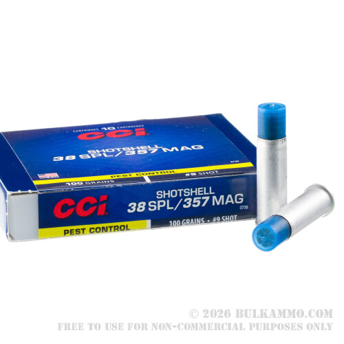 Ideal for killing rattlesnakes and other dangers animals, the CCI 100 grain .38 Special #9 shot cartridge uses #9 birdshot instead a single .38 bullet, making even the smallest of varmints easy to engage. Less destructive than traditional .38 specials, the CCI 100gr .38 Special #9 are less likely to penetrate through the drywall of you barn, and are great for removing vamrintes from attics, crawl spaces, and other small spaces without having to use poisons and other inhumane methods of capture.