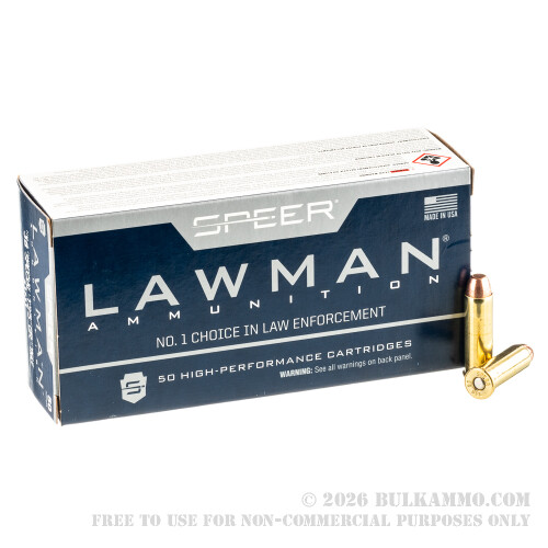 Speer presents their Lawman line of ammunition as being as close as possible to their personal defense loads, but for a price that will turn lengthy training sessions into a more palatable pastime. This 38 Special cartridge’s 125 grain projectile’s lead core is seamlessly and totally encased within its one-piece full metal jacket. This feature will not only protect your bore against lead fouling, but also keep hot propellant gasses from evaporating the lead in the bullet’s base so you’re not breathing toxic fumes while you’re perfecting your aim.