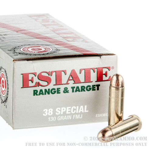 50 Rounds of .38 Spl Ammo by Estate Cartridge - 130gr FMJ