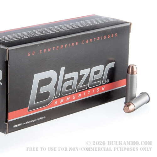 This cartridge sports a 158 grain projectile. The bullet’s flat nose will punch clean holes in paper targets, so you’ll have an easier time spotting and scoring your shots.