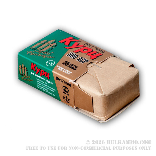 This is a 9x17mm cartridge; in America it’s more often, called a .380 Auto. It’s made by LVE, in Russia called the Novosibirsk Cartridge Plant. The round features a 92 grain projectile and is loaded hotter than American factory rounds, so tends to work in more guns than in less, and features a copper washed casing made from steel that has Berdan primers which means good ignition reliability but not very easy reloading.
