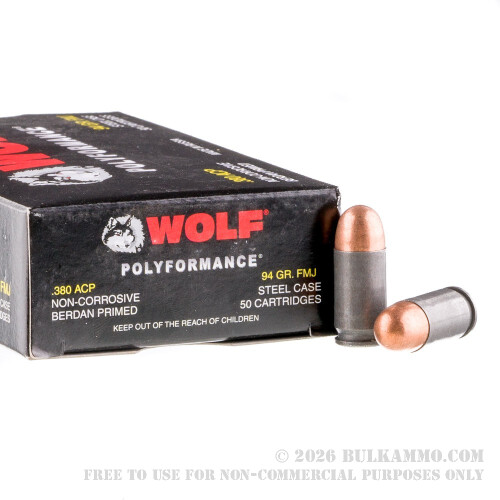 You can save more and shoot more with .380 ACP ammo from Wolf. Enjoy your plinking with these 94 grain full metal jacket bullets.