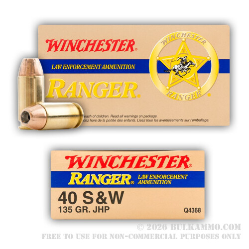 50 Rounds of .40 S&W Ammo by Winchester Ranger - 135gr JHP