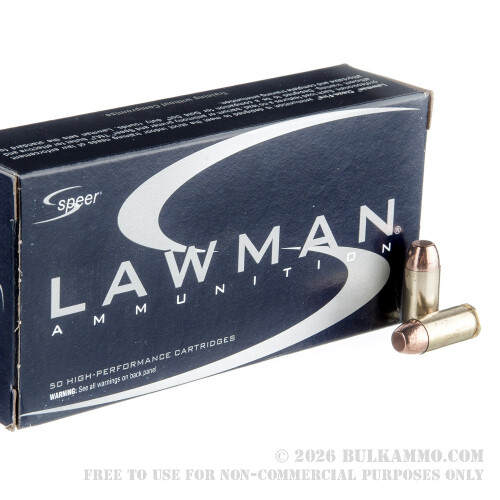 Speer Lawman ammunition is designed as a training companion for Speer Gold Dot hollow points; it replicates the more expensive product's external ballistics and felt recoil without the costly hollow point bullet. However, this .40 S&W ammo is an excellent choice for target practice regardless of what you carry.