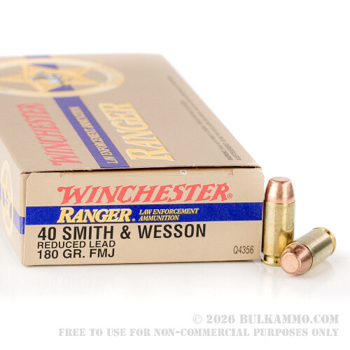 500 Rounds of .40 S&W Ammo by Winchester Ranger - 180gr FMJ