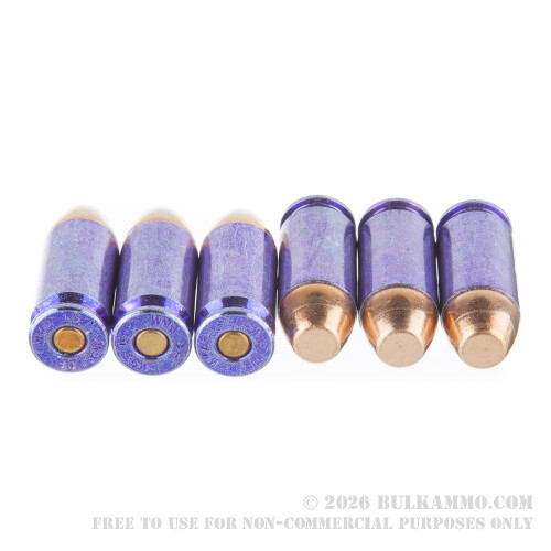 Made in the USA and produced just for a large, specific, titled government agency, this Winchester .40 S&W Training ammo was produced for range officers to be able to immediately recognize that it was in use. Even though these cases have a profound purple tint to them, the performance of the bullet and the functionality of the round itself are not affected in the slightest.