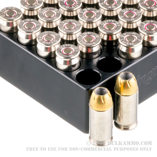 This .45 ACP ammo by Remington Golden Saber has it all: nickel-plated brass casings, low flash primers, and 230gr jacketed hollow point (JHP) projectiles designed to put a threat on its back. The anti-corrosive nature of the nickel-plated brass allows it to be stored for an extended period of time without impacting performance. The casings are Boxer-primed and reloadable.