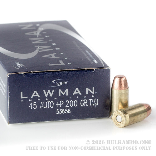 50 Rounds of .45 ACP + P Ammo by Speer Lawman - 200gr TMJ