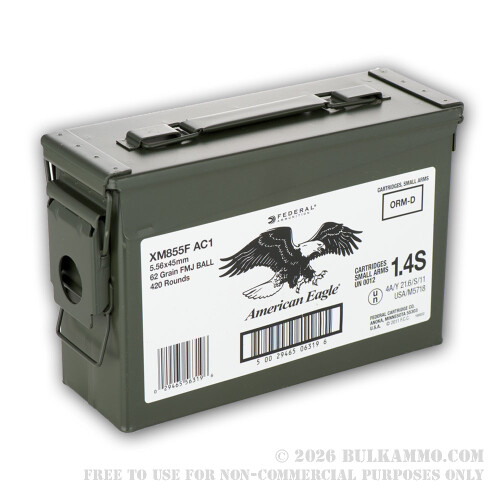 420 Rounds of 5.56x45 XM855 Ammo by Federal Packed in Military Ammo Can - 62gr FMJ