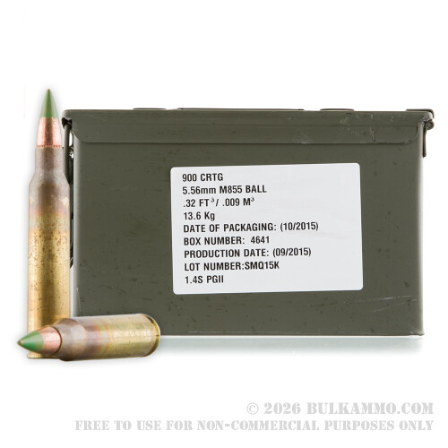 900 Rounds of 5.56x45 M855 Ammo by Federal - 62gr FMJ In Ammo Can