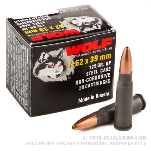 1000 Rounds of 7.62x39mm Ammo by Wolf - 122gr HP