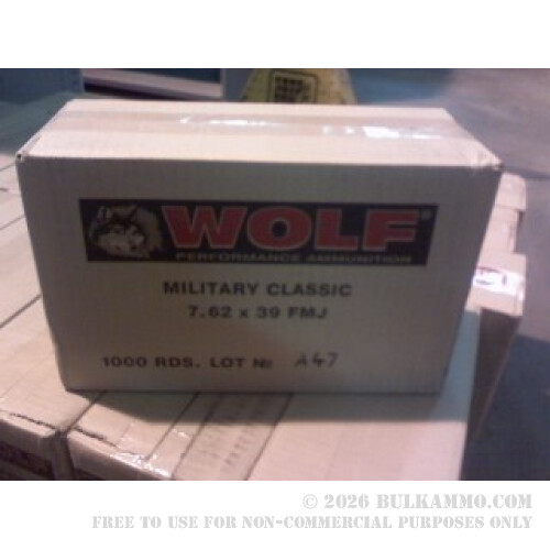 1000 Rounds of 7.62x39mm Ammo by Wolf - 124gr FMJ