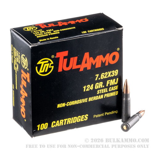 100 Rounds of 7.62x39mm Ammo by Tula - 124gr FMJ