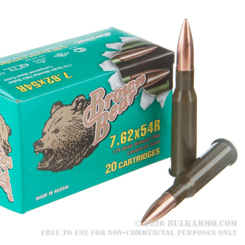 500 Rounds of 7.62x54r Ammo by Brown Bear - 174gr FMJ
