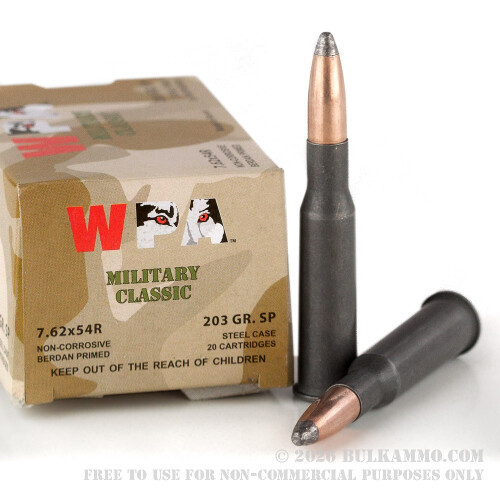 500 Rounds of 7.62x54r Ammo by Wolf Military Classic - 203gr SP