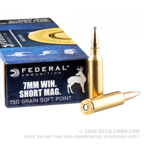 20 Rounds of 7 mm Win Short Mag Ammo by Federal - 150gr SP