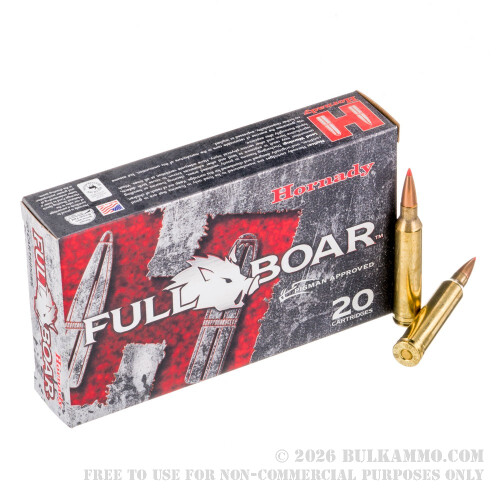 Hornady uses only the highest quality factory fresh brass casings, sensitive and reliable primers, and clean burning propellant while manufacturing their Full Boar line of ammunition. All in all, the technology this round represents translates into the perfect round for hunting rugged feral hogs.