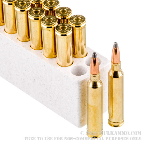 The PowerPoint bullet design, invented in the 1960s is a simple and effective round that includes strategic notching along the jacket creating uniform expansion. The soft point which ensures accuracy and rapid expansion for terminal results, is an honored bullet design for hunting applications. These no-frills hunting rounds offer time-tested reliability to help you bag that buck this season. Each box contains 20 rounds of 7mm Remington mag by Winchester.