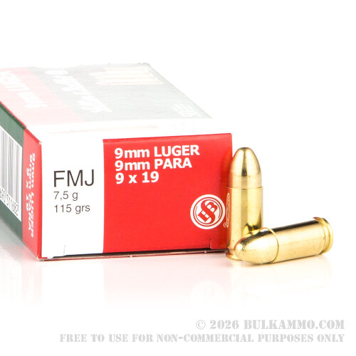 1000 Rounds of 9mm Ammo by Sellier & Bellot Police - 115gr FMJ