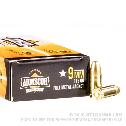 1000 Rounds of 9mm Ammo by Armscor - 115gr FMJ