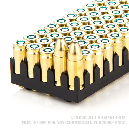 This 9mm cartridge features a 115 grain projectile, which is the Commonwealth standard. The bullet sports a full metal jacket, making this round ideal for long target shooting sessions as it will save your bore from the lead fouling that loosens groupings. This cartridge’s non-corrosive Boxer primed brass casing is fully reloadable, further making this round a great choice if you intend to hold onto it in the event of a hairy situation.