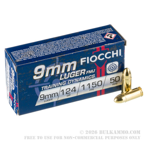 50 Rounds of 9mm Ammo by Fiocchi - 124gr FMJ