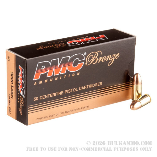 PMC's Bronze 124 grain FMJ bullet travels 1,150 feet per second out of the barrel and produces 338 foot pounds of muzzle energy. The boxer-primed brass is safe to reload. The ammo itself comes packaged in plastic 50 cartridge trays wrapped in a PMC Bronze branded cardstock box. The case contains 20 trays of ammo.