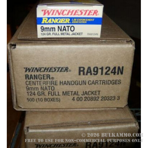 From Winchester’s Ranger Law Enforcement division comes the standard by which all 9mm full metal jacket rounds are measured: the 124 grain NATO round.