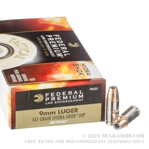 1000 Rounds of 9mm Ammo by Federal LE Hydra Shok - 147gr JHP