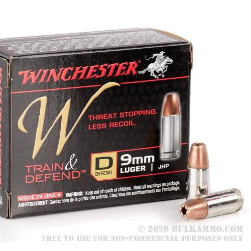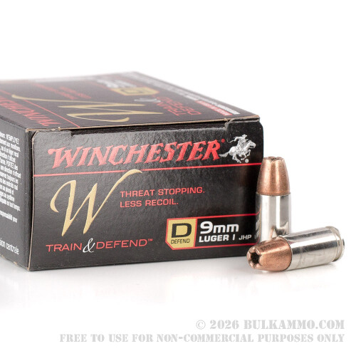 20 Rounds of 9mm Ammo by Winchester W Train and Defend - 147gr JHP