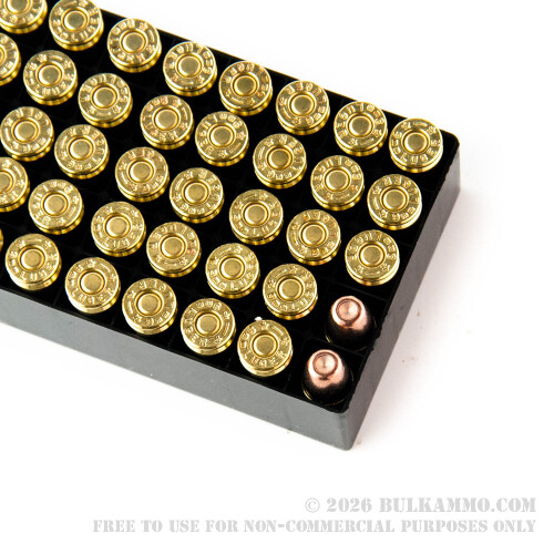 This 9mm cartridge by SinterFire features a 90 grain frangible bullet. That is a fairly light weight for a 9mm bullet, but it conveys a low recoil and fast 1,350 fps muzzle velocity that you’re certain to enjoy at the range. This bullet’s primary feature is its frangibility. Because it is made of compressed tin and copper powders, this bullet disintegrates on impact, effectively eliminating the threat of ricochets. Additionally, this bullet is essentially incapable of penetrating a wall, meaning it’s a relatively safe bet for home defense where you recognize the absolute necessity of bystander safety.