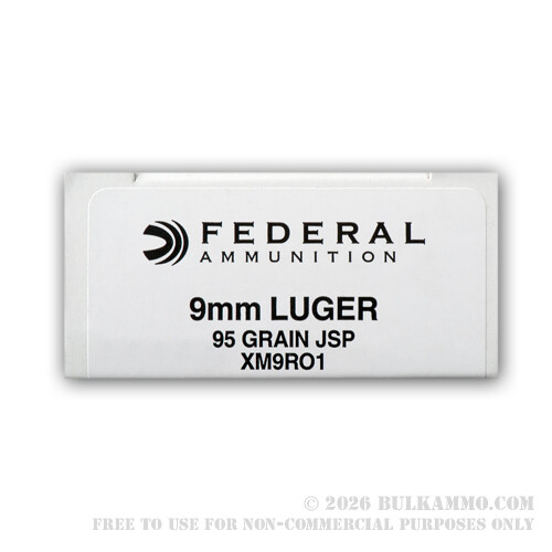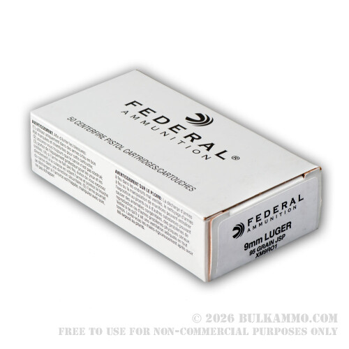 50 Rounds of 9mm Ammo by Federal - 95gr JSP